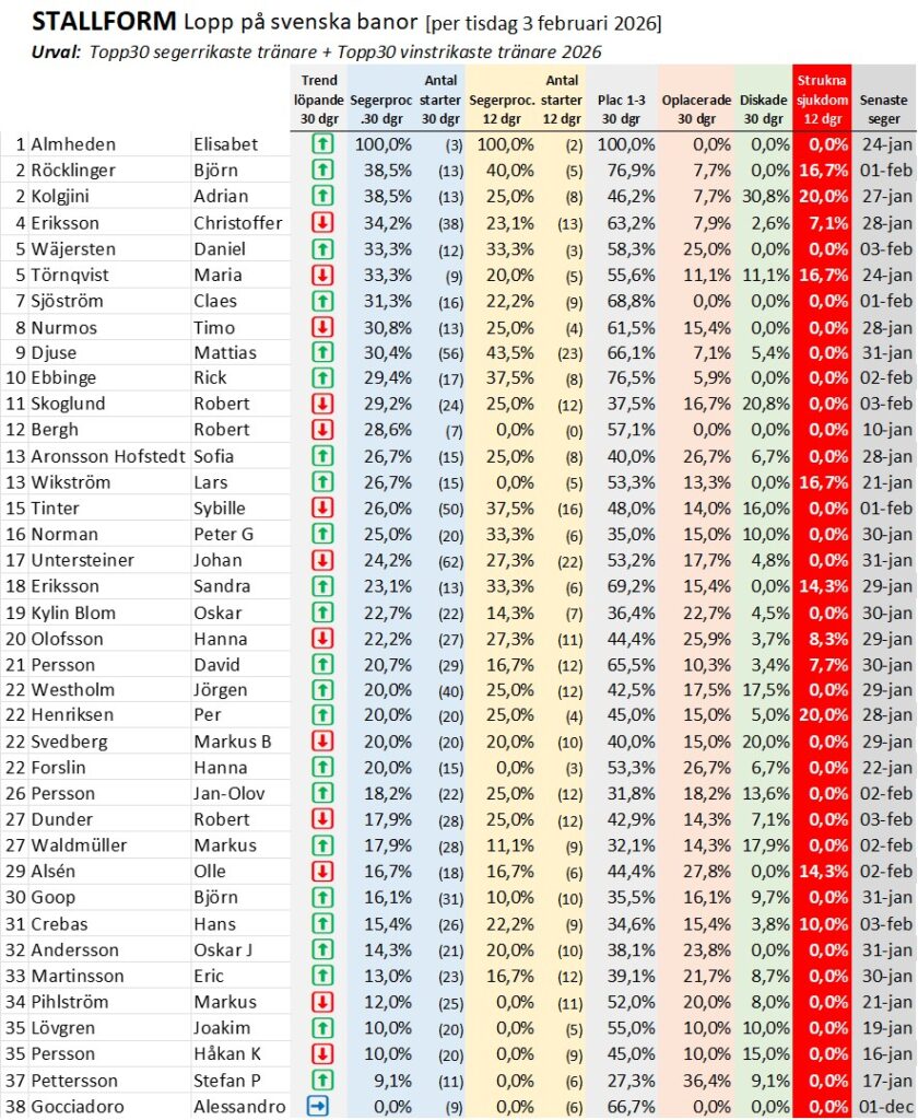 Via exklusiv statistik får man på Vinstfaktor.se löpande uppdateringar på stallens status.